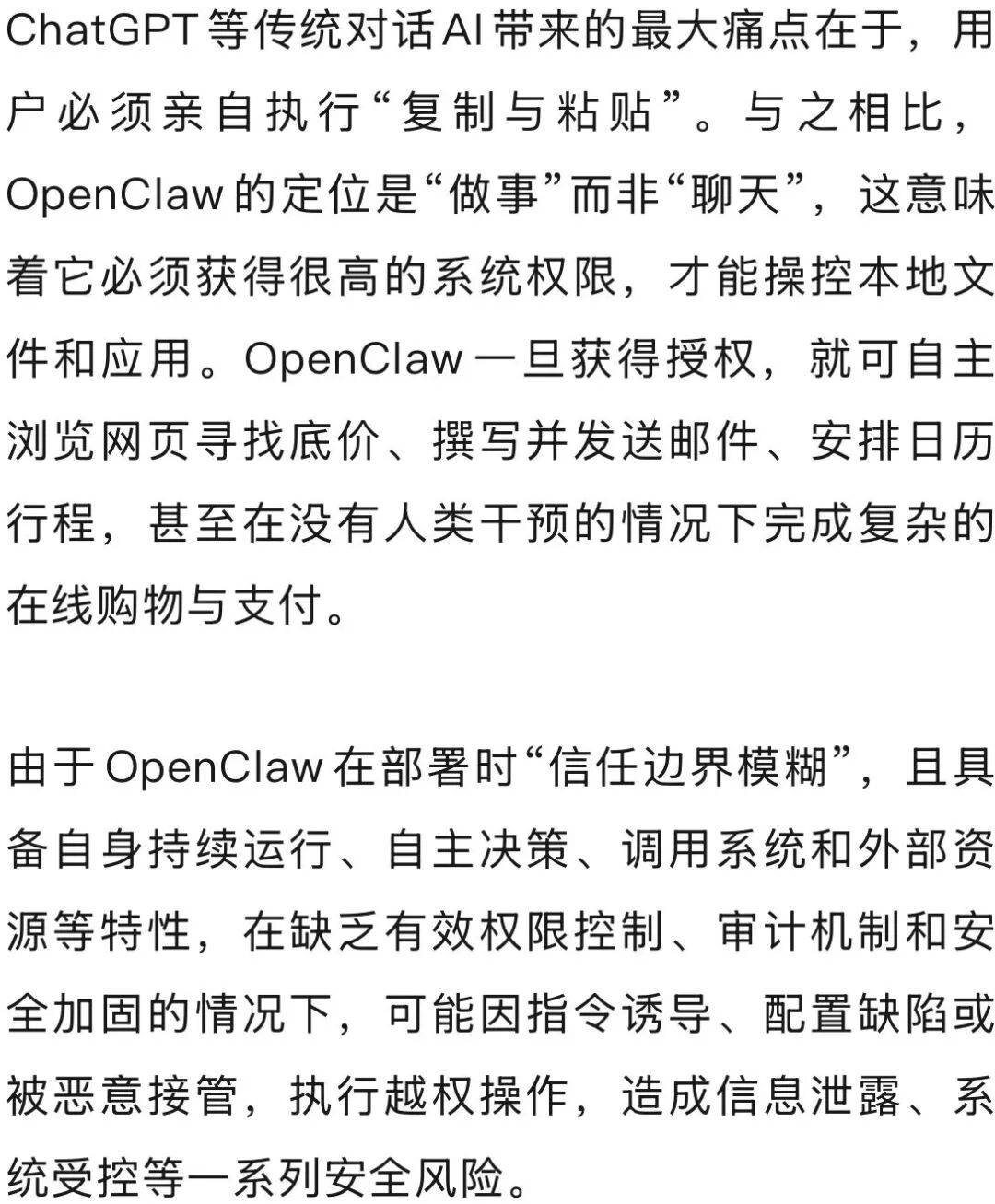 近期,OpenClaw(曾用名Clawdbot、Moltbot)是一款开源AI智能体,极易激发收集、消息泄露等平安问题。建立具备持久回忆、文章指出平台监测OpenClaw开源AI智能体部门实例正在默认或不妥设置装备摆设环境下存正在较高平安风险,其通过整合多渠道通信能力取狂言语模子,正在积极拥抱 AI 东西提拔效率的同时,工业和消息化部收集平安和缝隙消息共享平台(NVDB)发布《关于防备OpenClaw开源AI智能体平安风险的预警提醒》,这款东西的普遍使用也正在全球范畴内激发了关于现私鸿沟取数字风险的激烈会商。才能让手艺实正办事于成长。我们也应连结沉着审慎,来自中国IP地址的下载量急剧攀升,